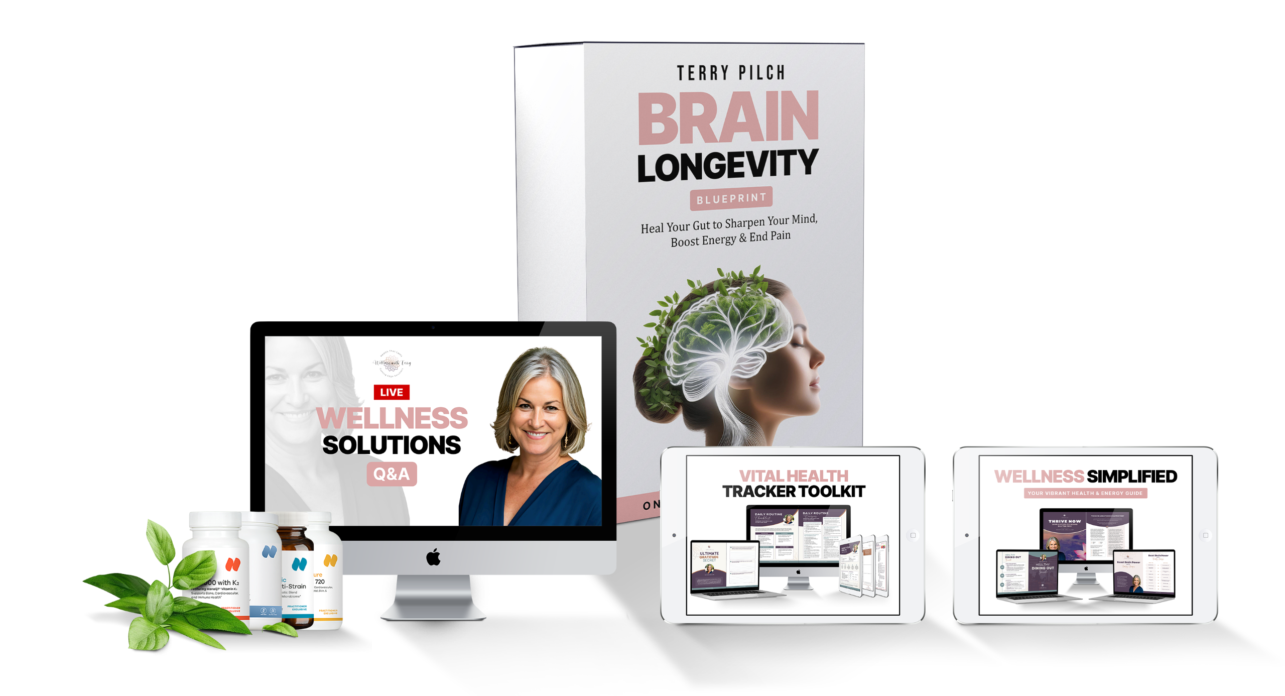 The Brain Longevity Blueprint is a transformative 6-step system designed by Terry Pilch, Certified Functional Nutrition Practitioner, after 15 years of guiding clients back to vibrant health, especially those who felt like they’d tried everything and were ready to give up.